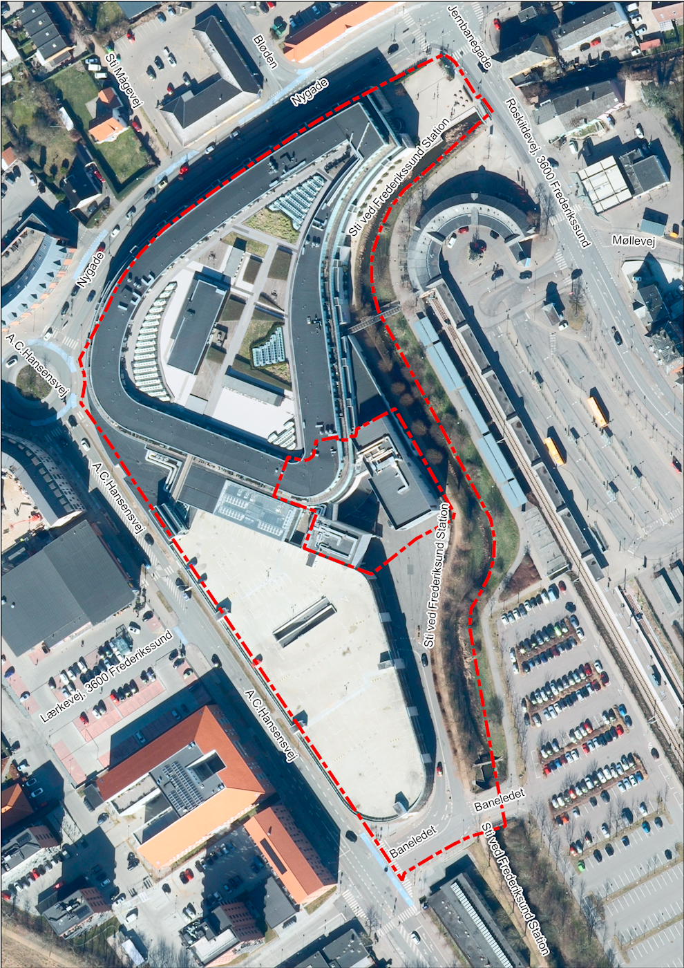 Planområdets afgrænsning og beliggenhed i Frederikssund bymidte