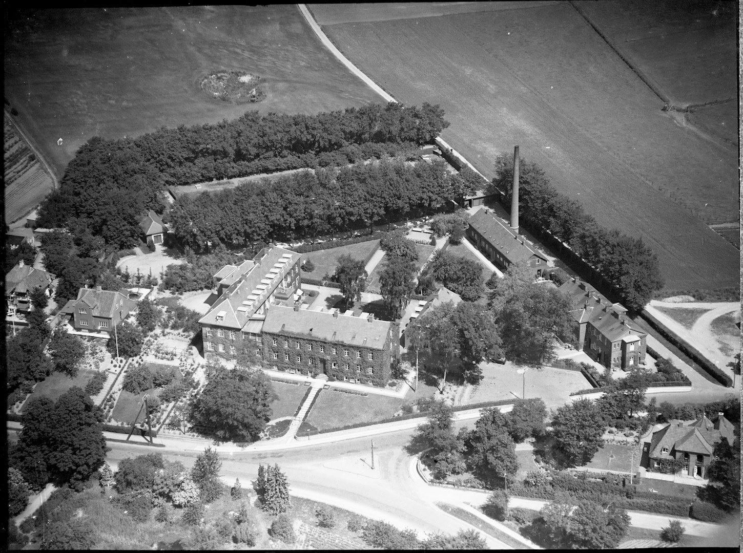 Her ses den ældste bygning med indgangen til hospitalet fra Færgevej og den nyere vinkelfløj, der blev tilbygget i 1926.