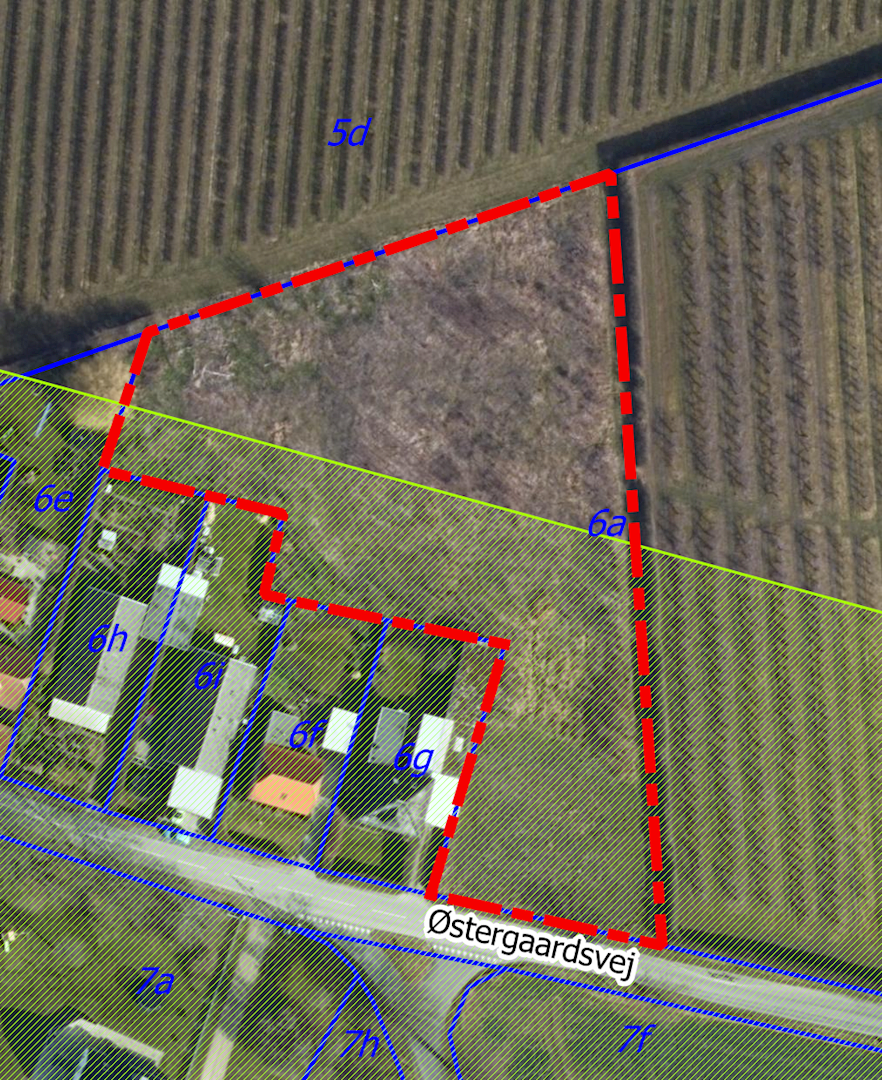 Billedet viser skovbyggelinjen, som halvdelen af lokalplanområdet er omfattet af.
