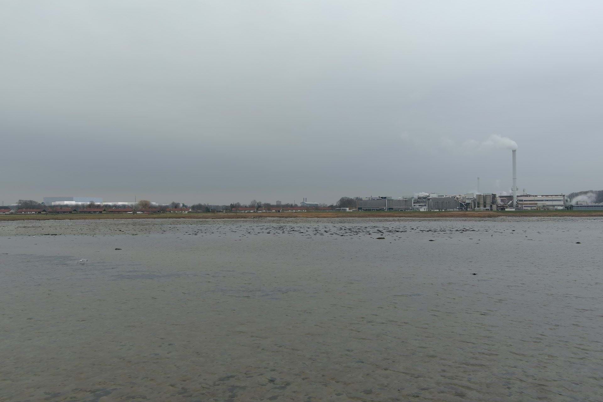 Virksomheden Topsoe er også dominerende for kystlinjen set fra bugten. Topsoes bebyggelse er varierede i højde men op mod 18 meter. Bebyggelsen er store voluminer med fladt tag i hvide og grå nuancer. I samspil med Topsoe vurderes bebyggelsen i 25 og 15 meter i erhvervsområdet at være mindre dominerende for kystlandskabet ift. volumen og højden, men er ikke en uvæsentlig ændring.