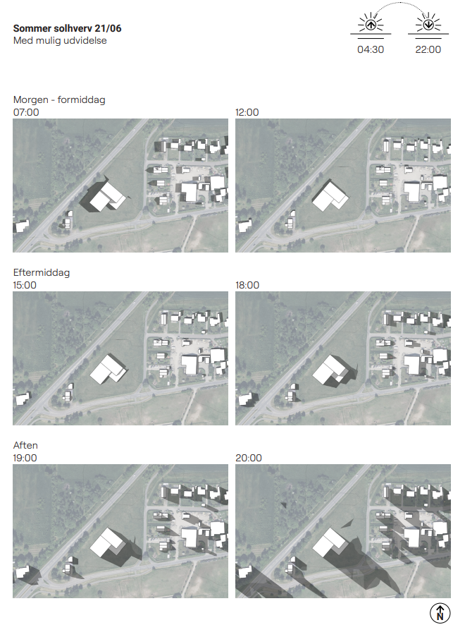 Skyggediagram 2: Viser skyggepåvirkning ved sommersolhverv.