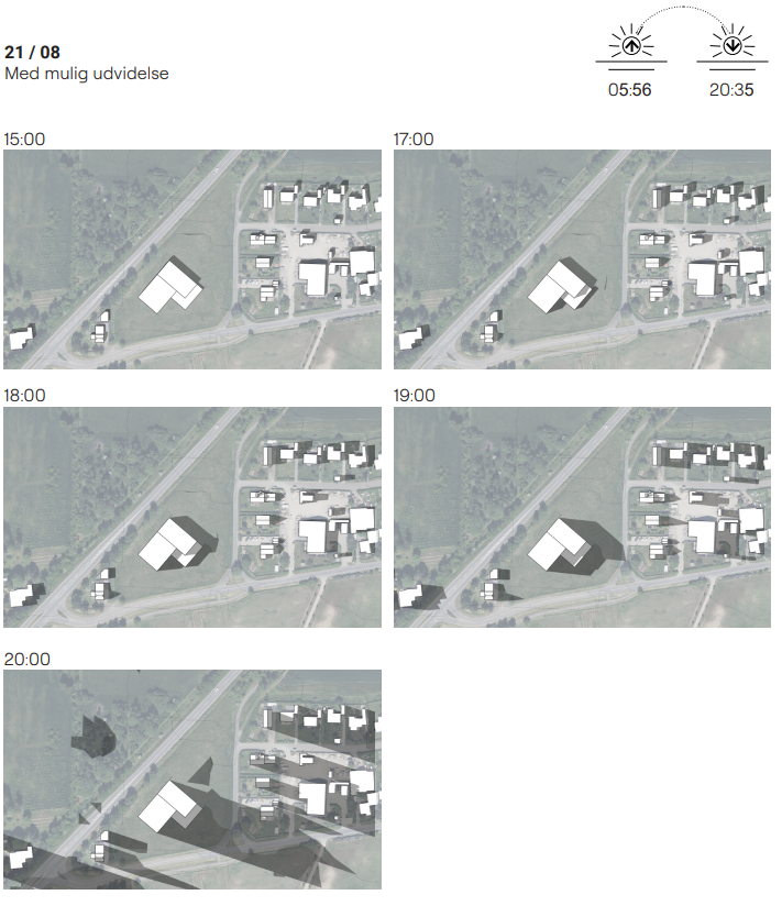 Skyggediagram 3: Viser skyggepåvirkning ved 21. august og 21. maj.