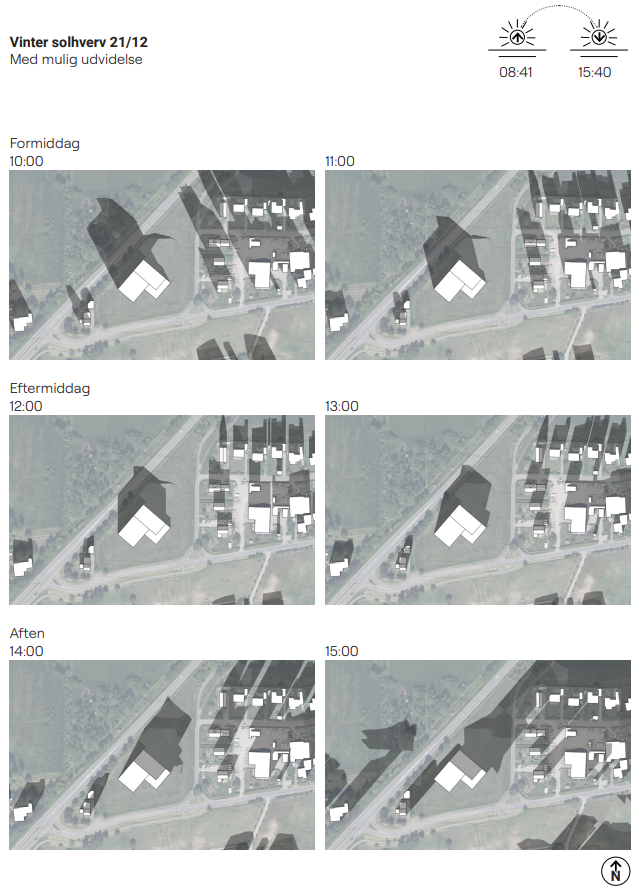 Skyggediagram 4: Viser skyggepåvirkning ved vintersolhverv.