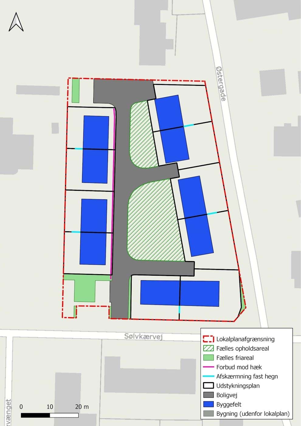 Kortbilag 4 viser lokalplanens grønne områder, hvilke inkluderer fælles friarealer og opholdsarealer, samt hvor der må placeres fast hegn.
