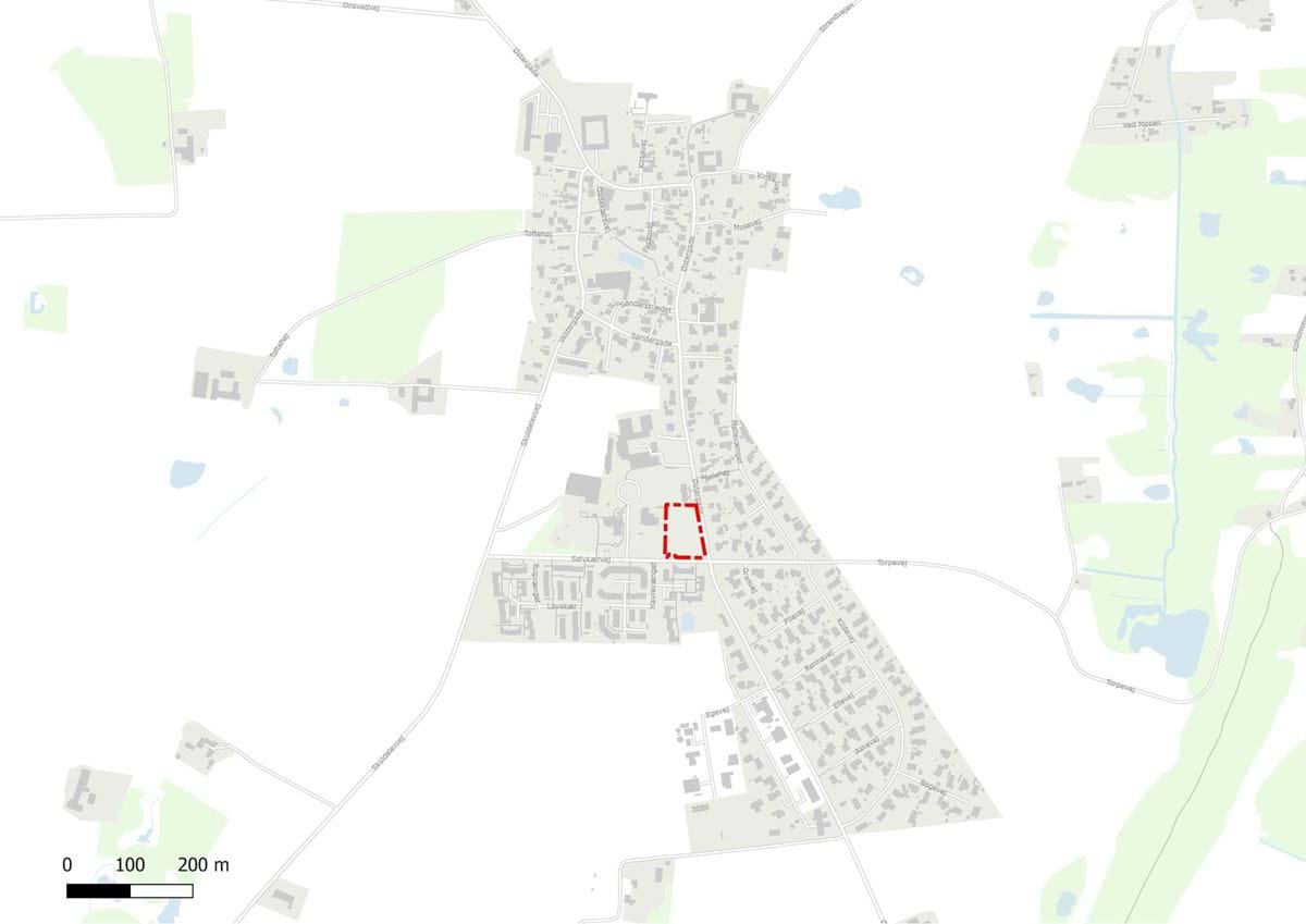 Oversigtskort 1: Kortet viser en lokalplanens afgræsning markeret med rødt beliggende i Skuldelev.