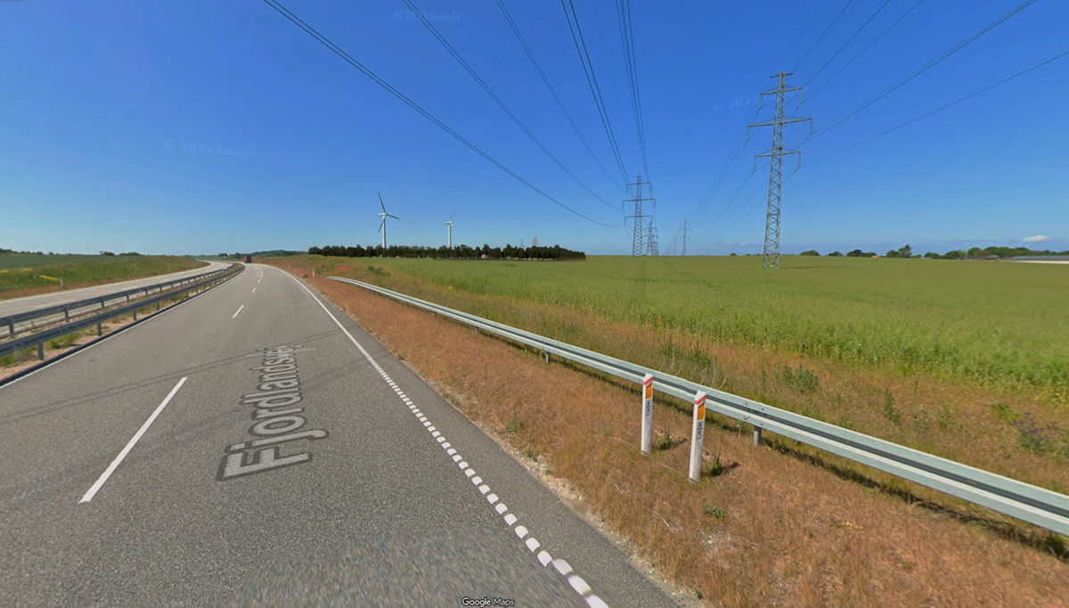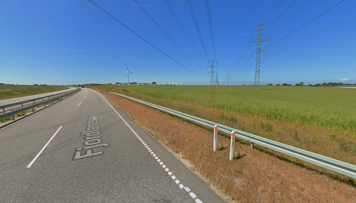 Foto af de eksisterende forhold uden batteripark set nordøst fra Fjordlandsvej