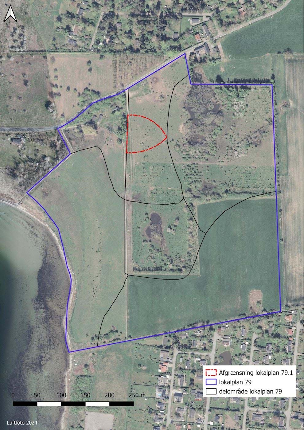Luftfoto med afgrænsninger af lokalplan 79 og 79.1